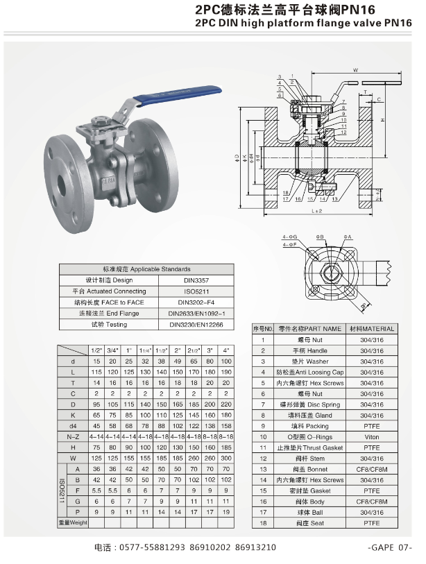 2PC高平臺德標法蘭球閥PN16